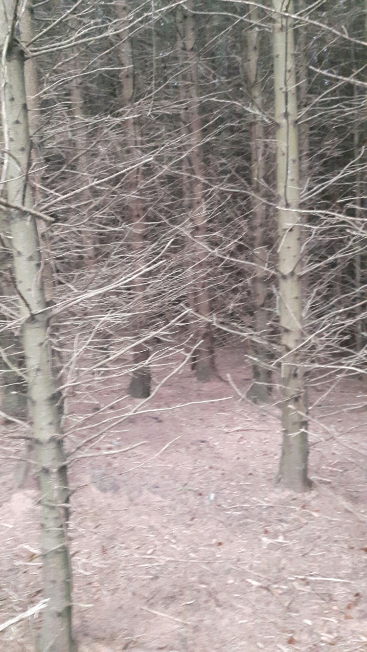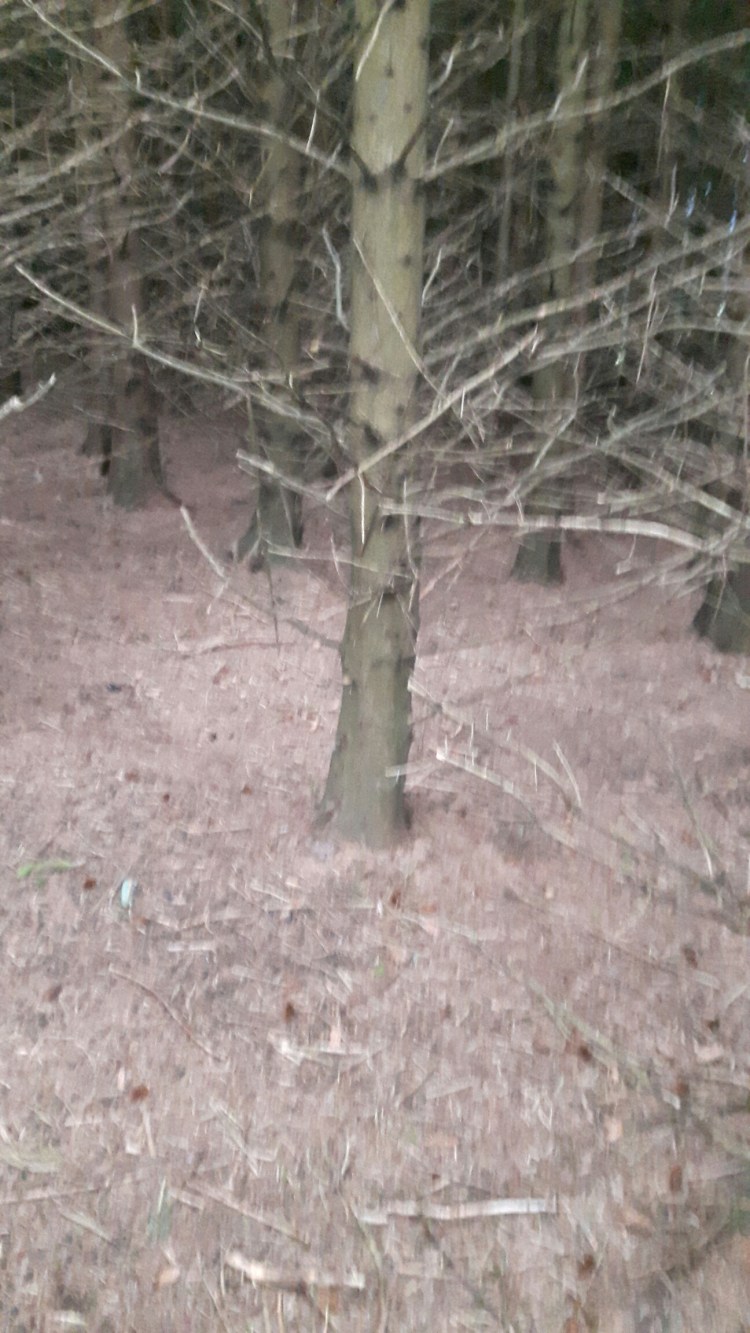 Only the edges of the plantation and the very tops of the trees inside showed any greenery. The bulk of the tree trunks, and most vividly the forest floor, showed no growth. Some birdsong aside, no sign of other life.