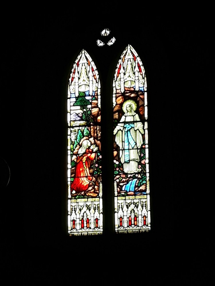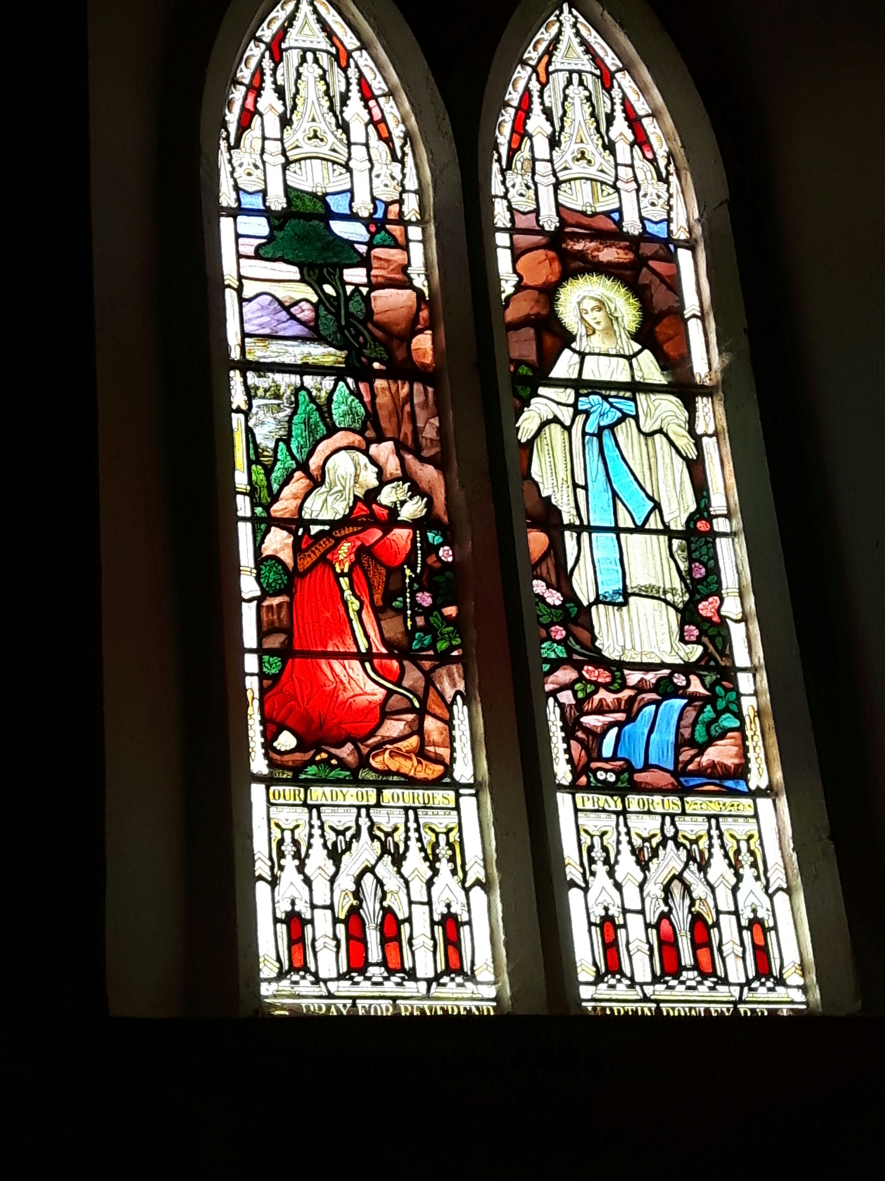 Here is a window showing Our Lady of Lourdes and St Bernadette: