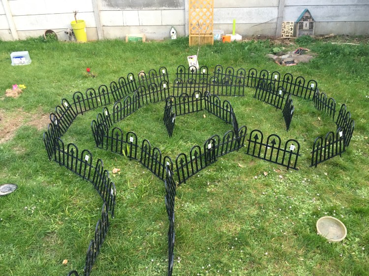 The prospect of having a labyrinth in ones garden seems alluring, albeit, done properly, highly expensive. I have found an appropriately cheap and easy way of labyrinth building – using small €1.49 sections of fencing from Mr Price