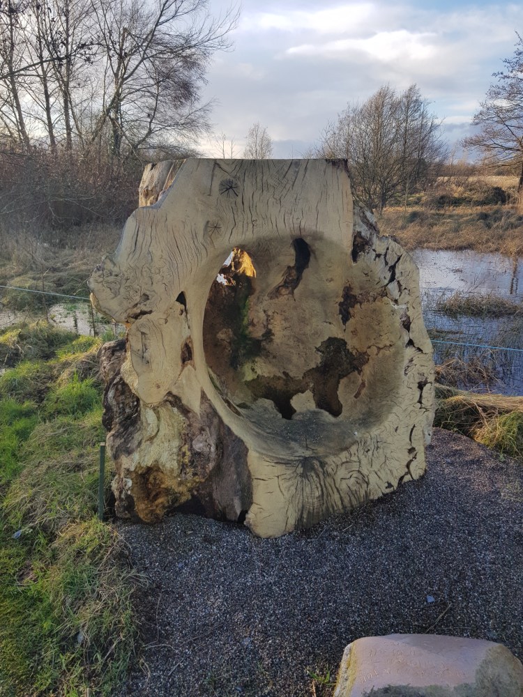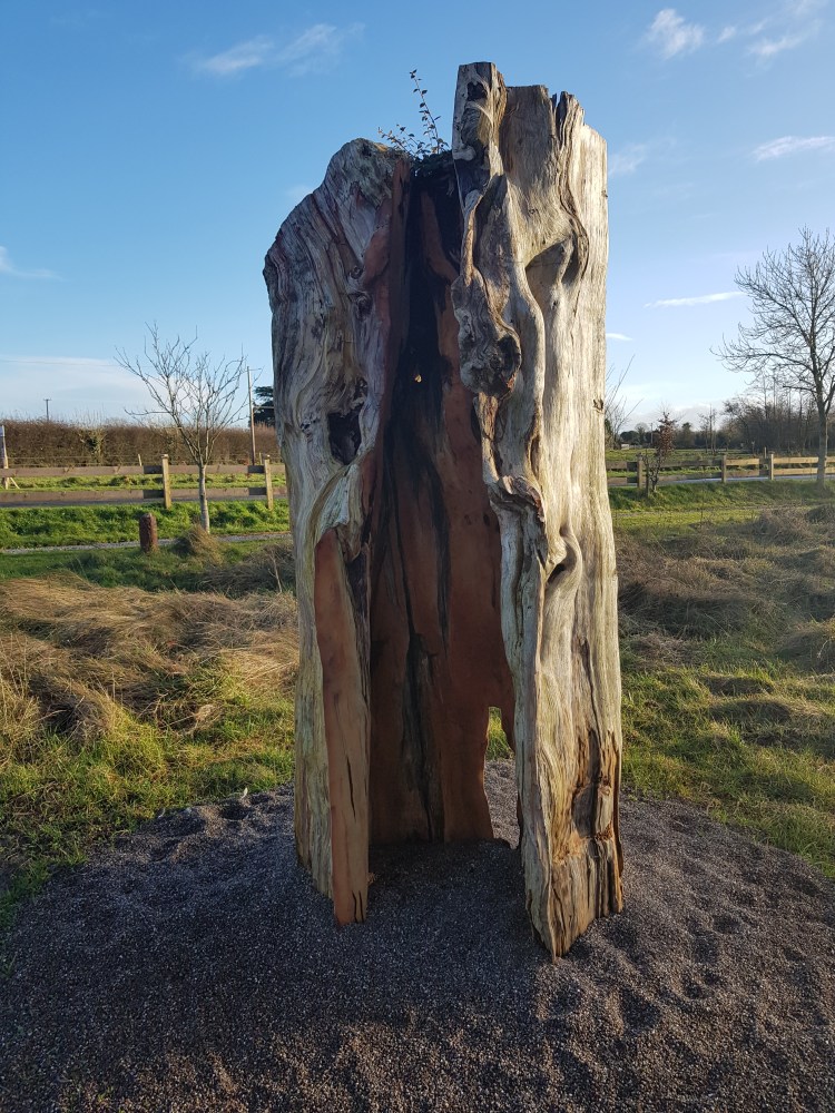 There is a leaflet on the Cabragh walk available here. One doesn’t necessarily have to embrace the concept overall to enjoy a walk around some striking sculptures … but the overall concept gives these works a deeper resonance.