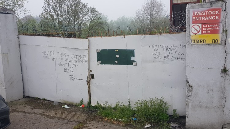 Finally here is the graffiti in some kind of context. This is a derelict site with no sign now of livestock or of a “Guard Do”