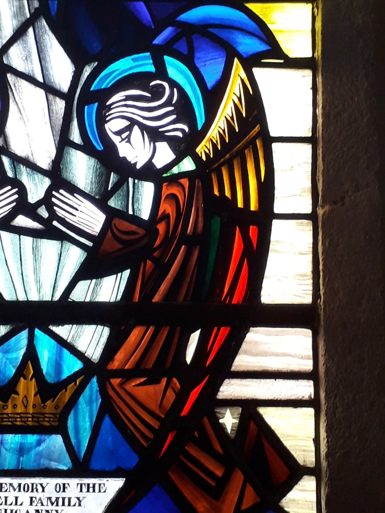 Our Lady of the Assumption’s in Newcastle has some “traditional” windows typical of the late 19th Century, and some more unusual and distinctive ones. I don’t have anything against “traditional” windows (a post may come on on this) but for this post I will focus on some of the more unusual ones: