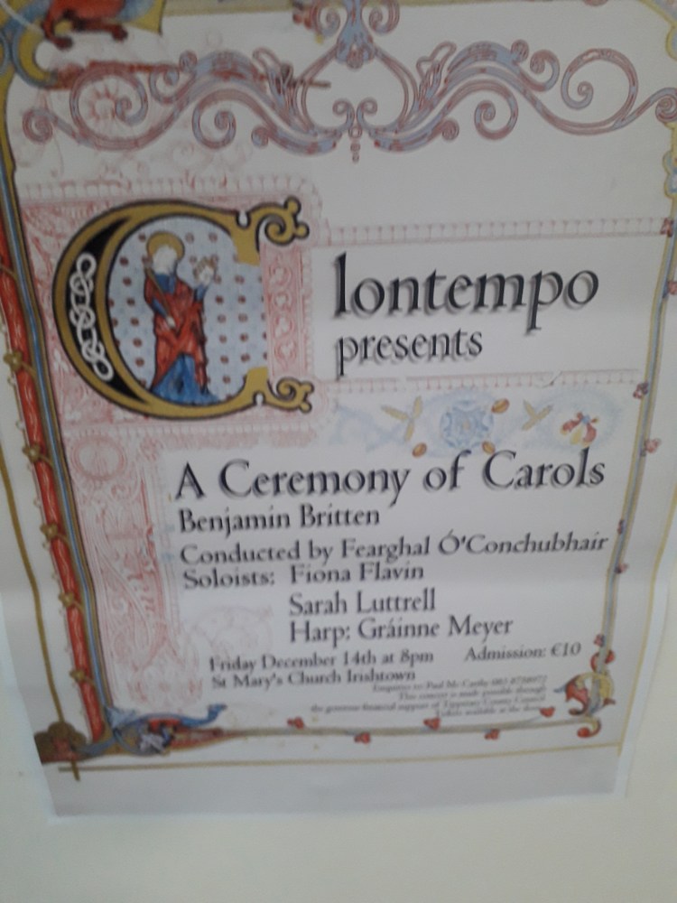 Here’s a poster for this event in one of the most beautiful (and atmospheric) churches in Clonmel: