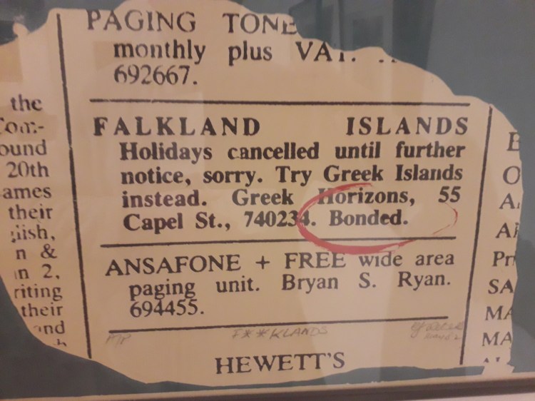 Currently this piece by the late E J Peters – based apparently on an actual small ad – is on displayin Tipperary County Museum in Clonmel as part of their Reflections exhibitions